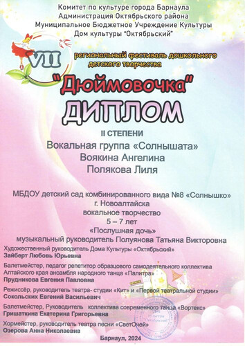 Муниципальное бюджетное дошкольное образовательное учреждение детский сад комбинированного вида № 8 "Солнышко" города Новоалтайска