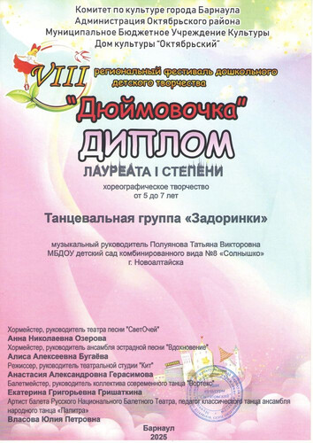 Главная | Наша жизнь | Фотогалерея | Полуянова Татьяна Викторовна | Достижения детей | Задоринки Полуянова ТВ