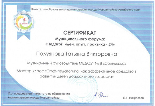 Главная | Наша жизнь | Фотогалерея | Полуянова Татьяна Викторовна | Мои достижения | Сертификат Полуянова ТВ