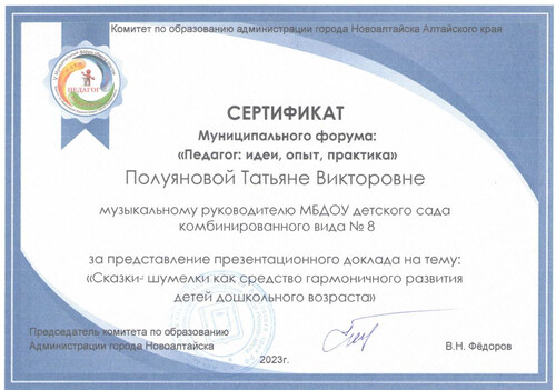 Главная | Наша жизнь | Фотогалерея | Полуянова Татьяна Викторовна | Мои достижения | Сертификат Полуянова ТВ (4)