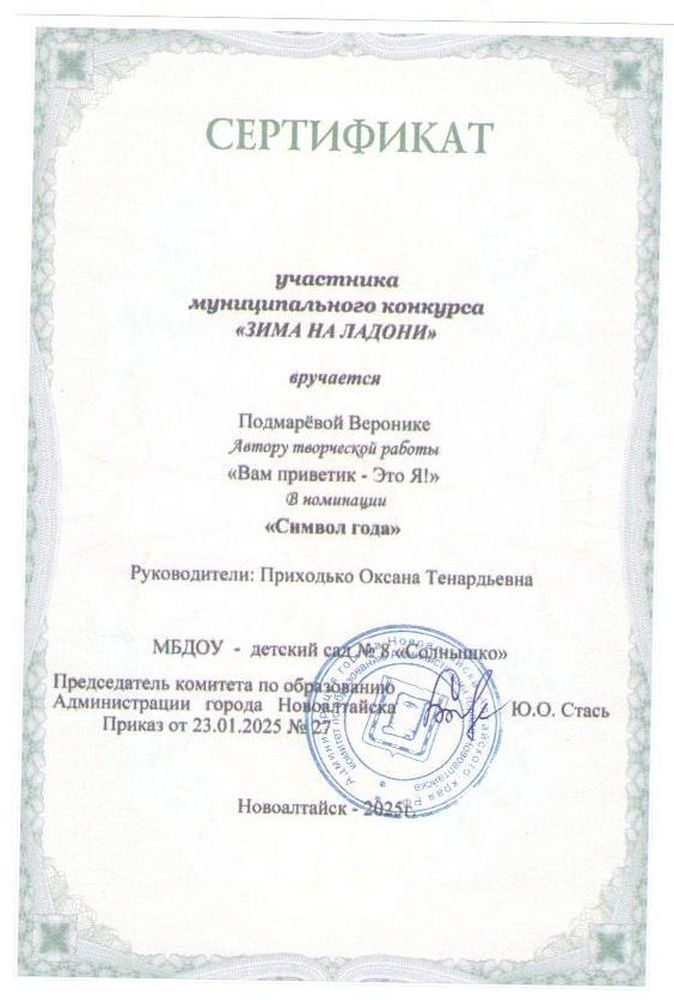 Главная » Фотогалерея » Приходько Оксана Тенардьевна » Достижения детей