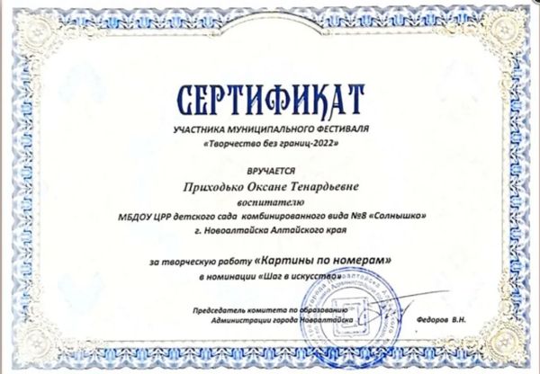 Главная » Фотогалерея » Приходько Оксана Тенардьевна » Мои достижения