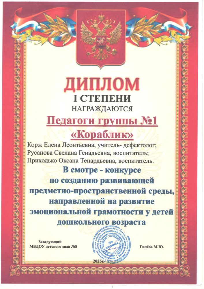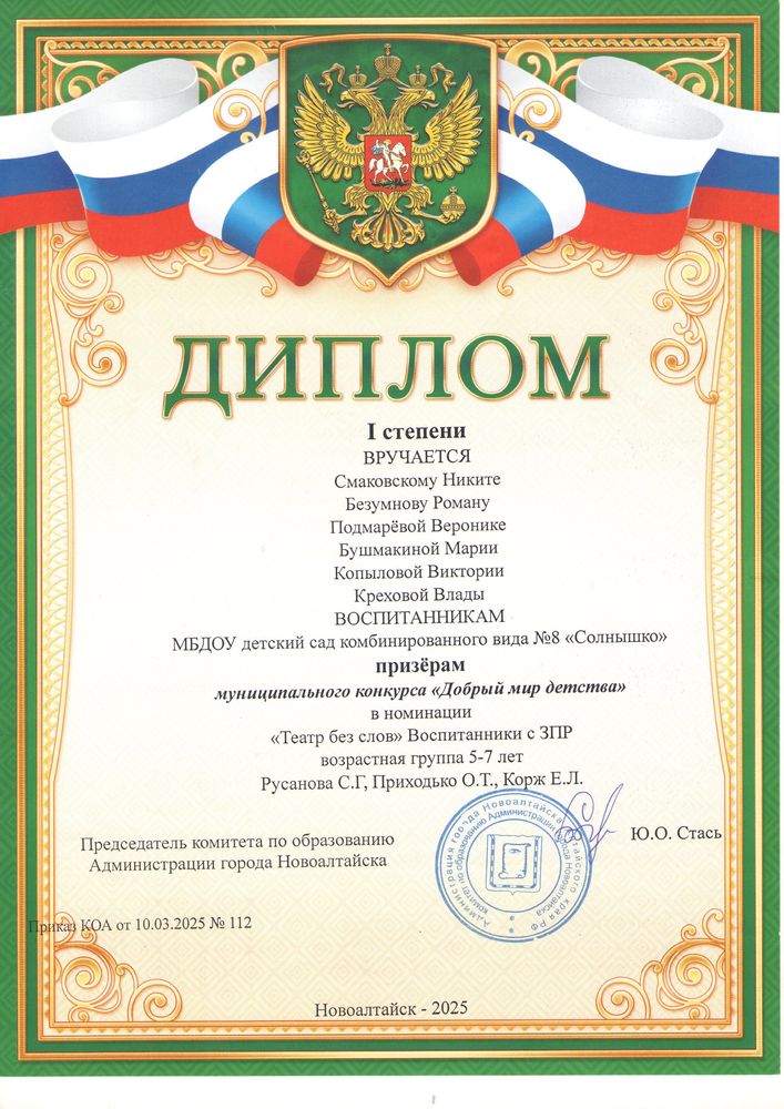 Муниципальное бюджетное дошкольное образовательное учреждение детский сад комбинированного вида № 8 "Солнышко" города Новоалтайска