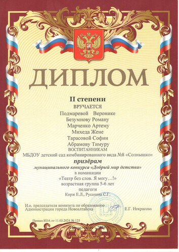 Муниципальное бюджетное дошкольное образовательное учреждение детский сад комбинированного вида № 8 "Солнышко" города Новоалтайска