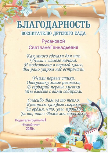 Главная | Наша жизнь | Фотогалерея | Русанова Светлана Геннадьевна | Мои достижения | Благодарность Русанова СГ