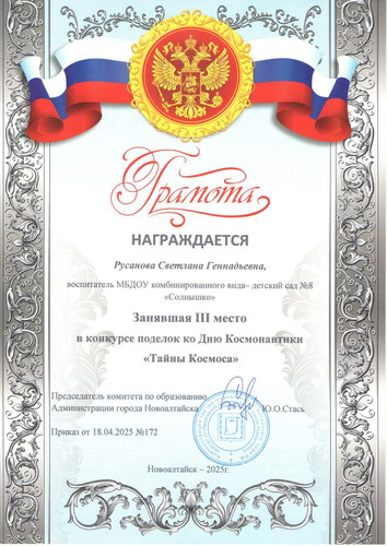 Главная | Наша жизнь | Фотогалерея | Русанова Светлана Геннадьевна | Мои достижения | Грамота Русанова СГ