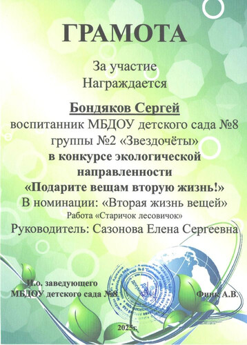 Главная | Наша жизнь | Фотогалерея | Сазонова Елена Сергеевна | Достижения детей | 2025г. Бондяков С.