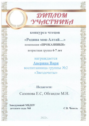 Главная | Наша жизнь | Фотогалерея | Сазонова Елена Сергеевна | Достижения детей | Аверина В. Обгаидзе МН, Сазонова ЕС