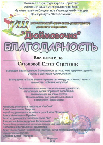 Главная | Наша жизнь | Фотогалерея | Сазонова Елена Сергеевна | Мои достижения | Благодарность Сазонова ЕС (2)