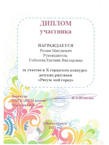 Главная | Наша жизнь | Фотогалерея | Соболева Евгения Викторовна | Достижения детей | 2025г. Макуцевич Роман