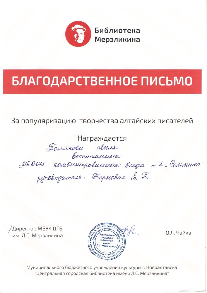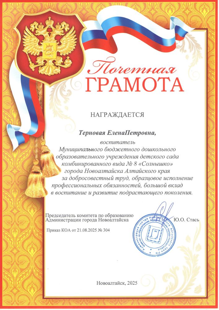 Муниципальное бюджетное дошкольное образовательное учреждение детский сад комбинированного вида № 8 "Солнышко" города Новоалтайска