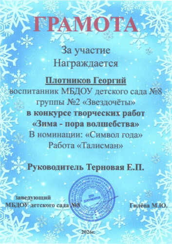 Главная | Наша жизнь | Фотогалерея | Терновая Алена Петровна | Достижения детей | Грамота, Плотников Г, Терновая Е.П.
