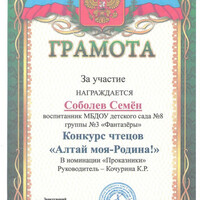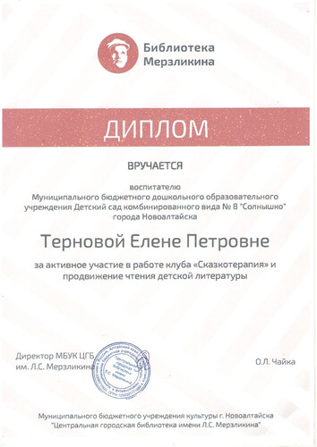 Главная | Наша жизнь | Фотогалерея | Терновая Алена Петровна | Мои достижения | Диплом Терновая ЕП